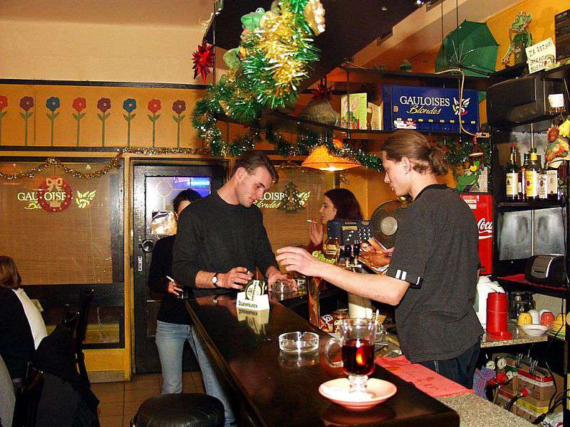 In a small bar