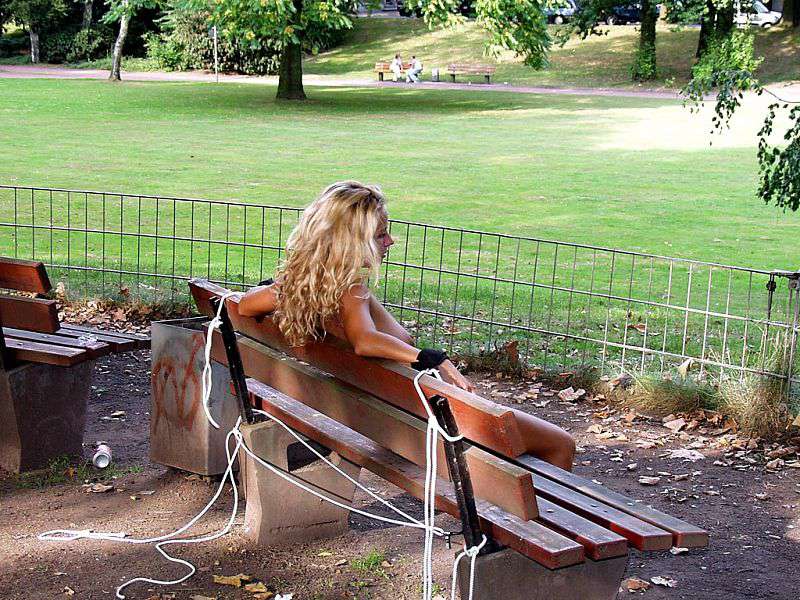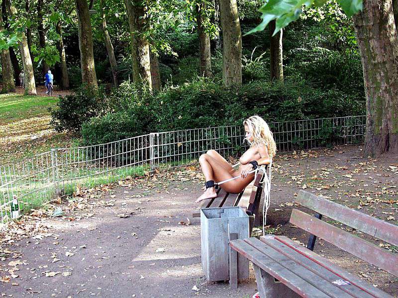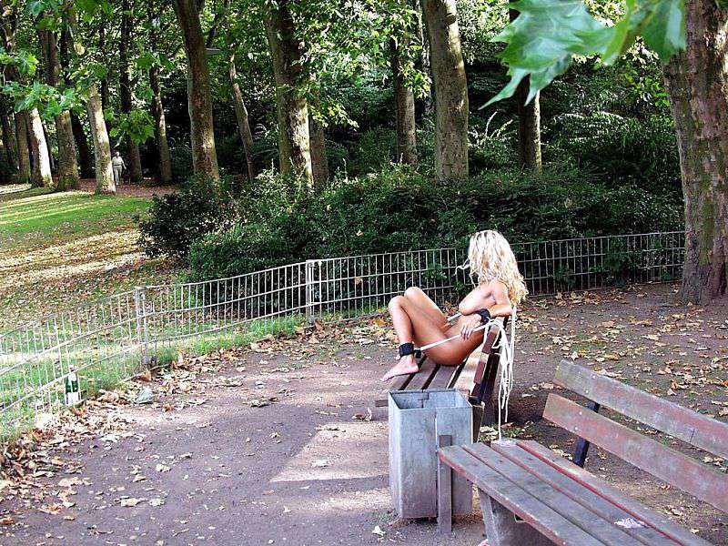 Tied on a park bench