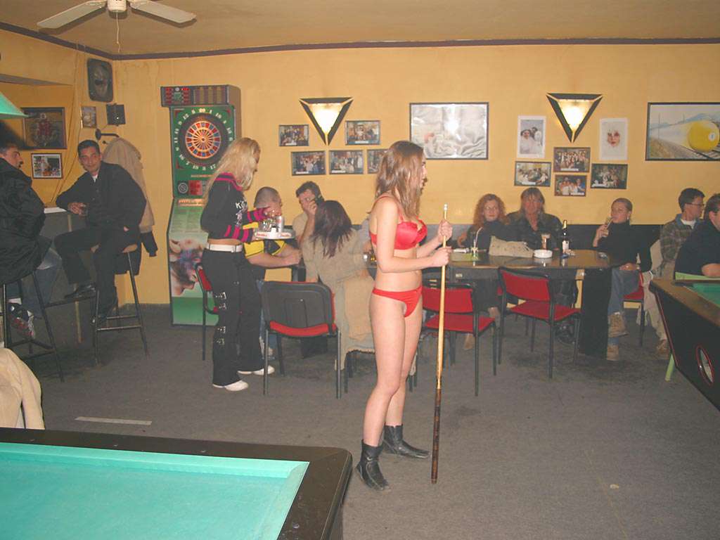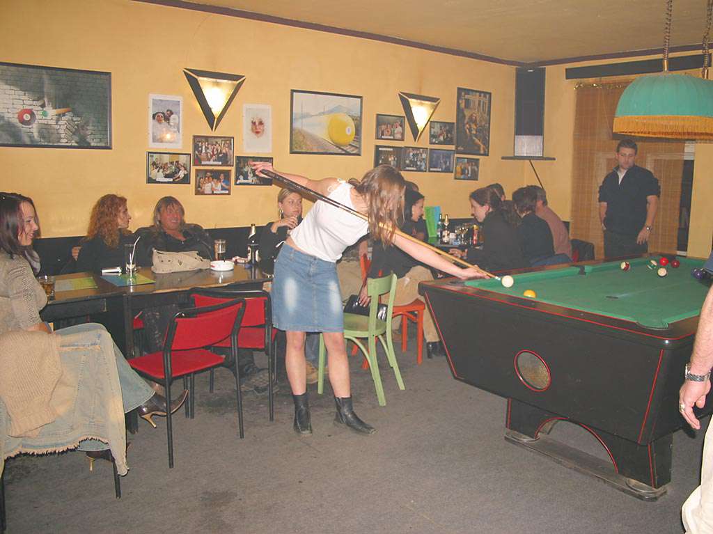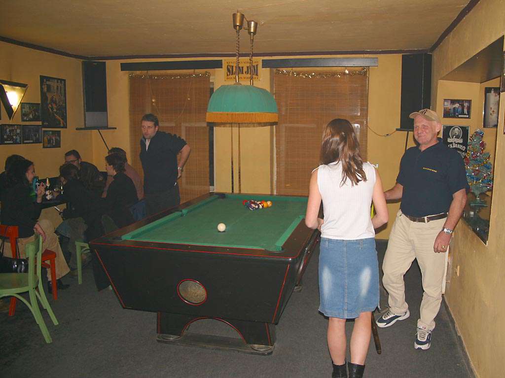 In a pool hall bar