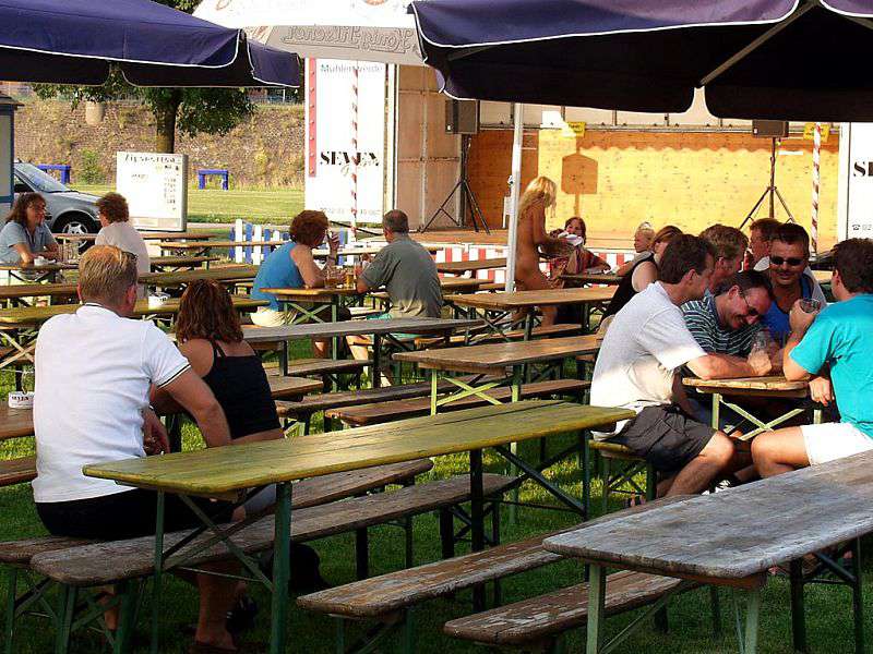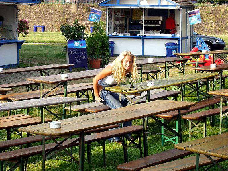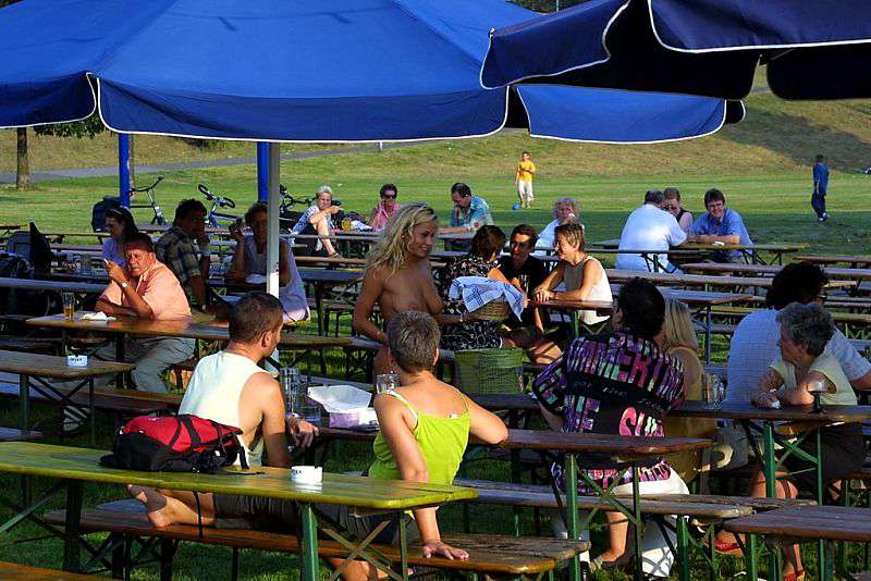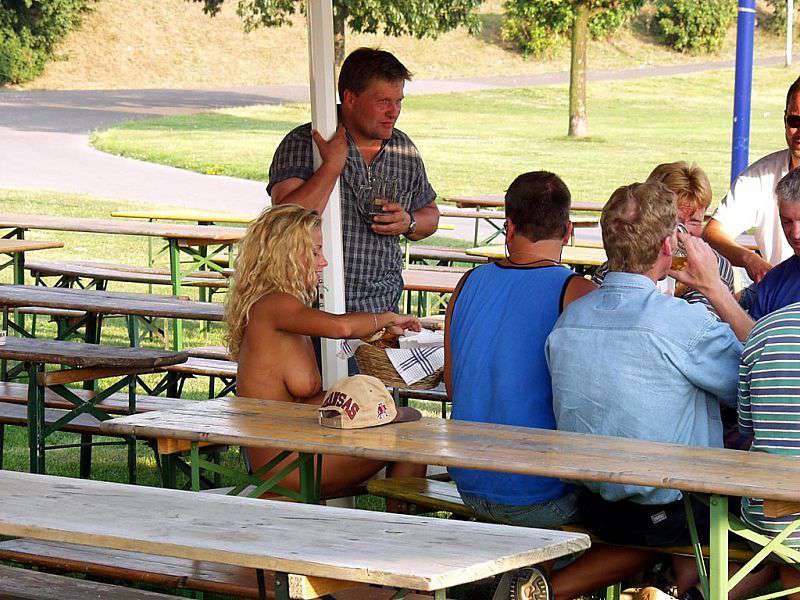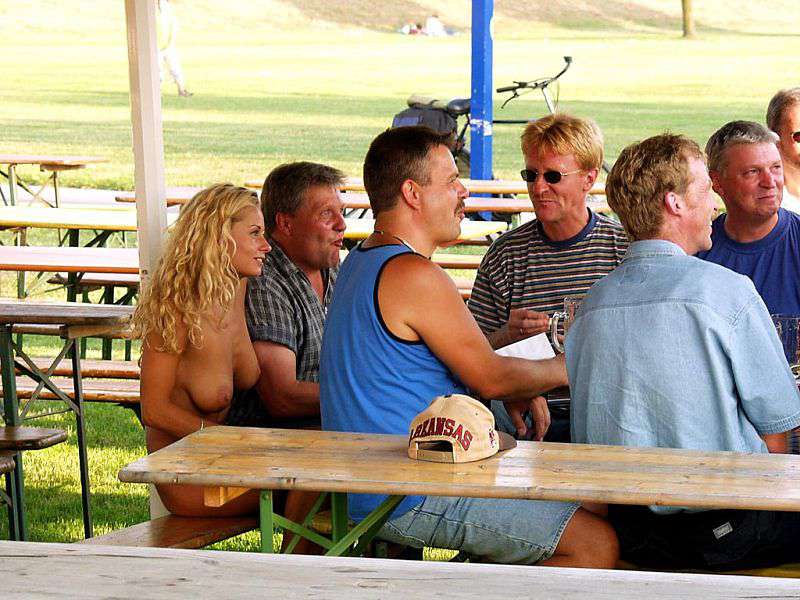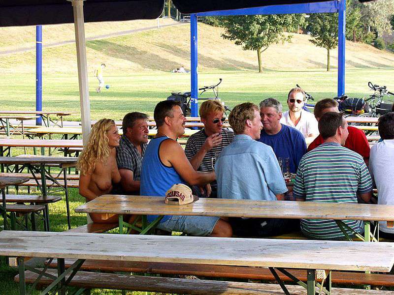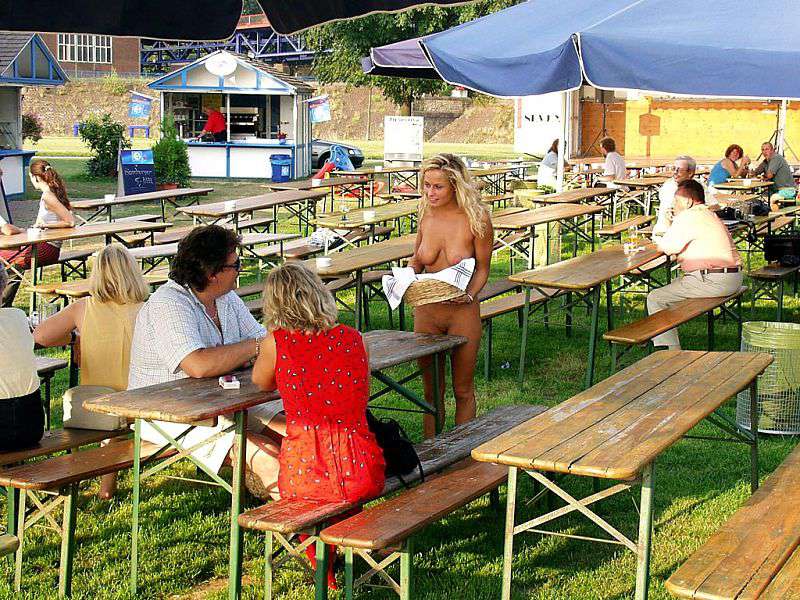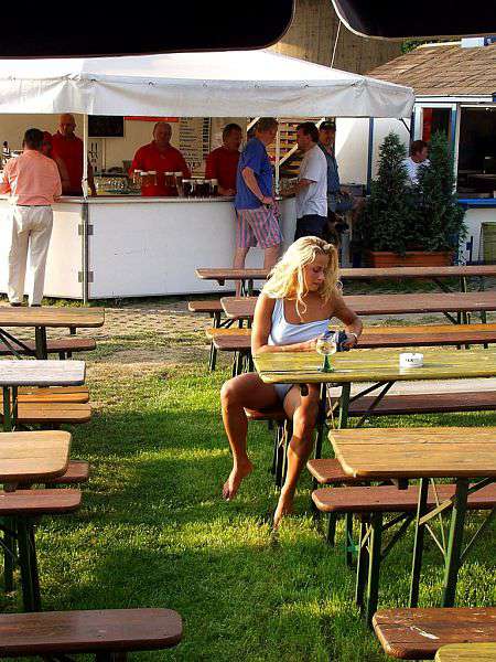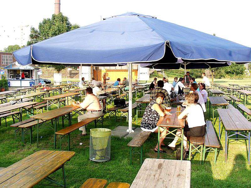 In a beer garden