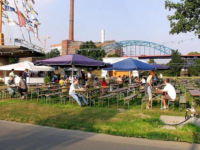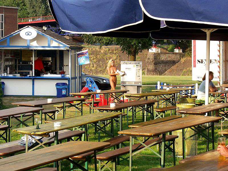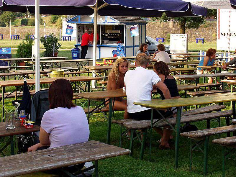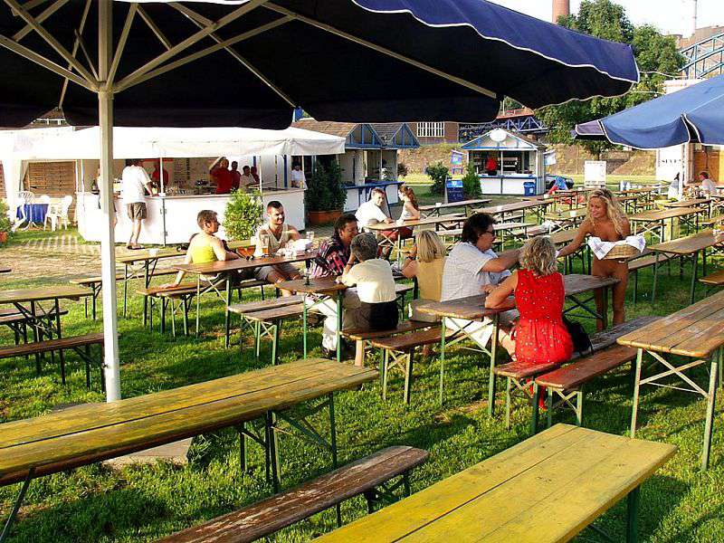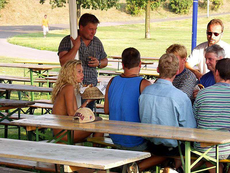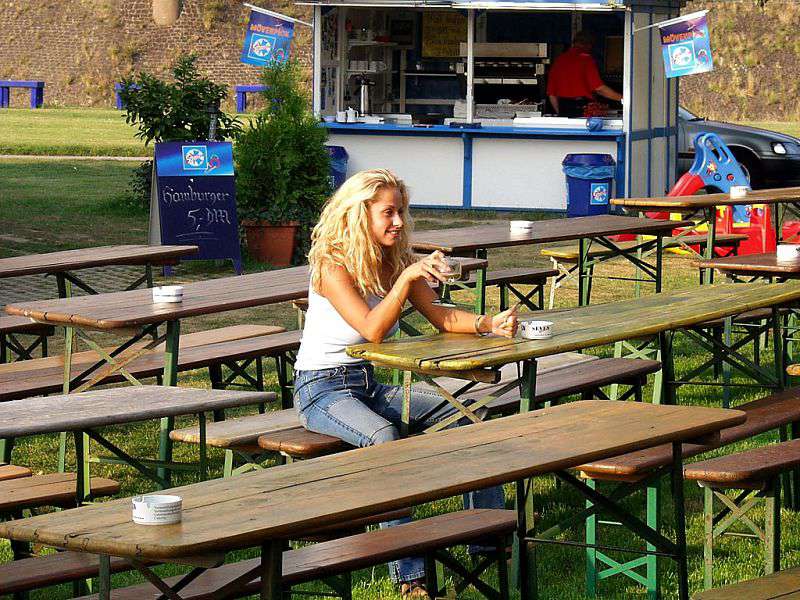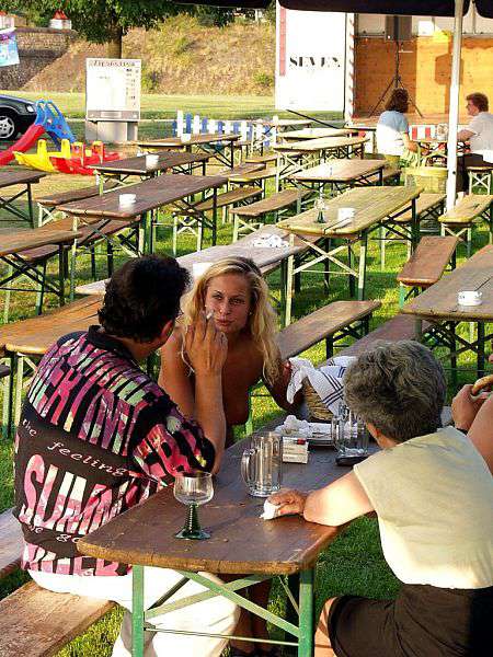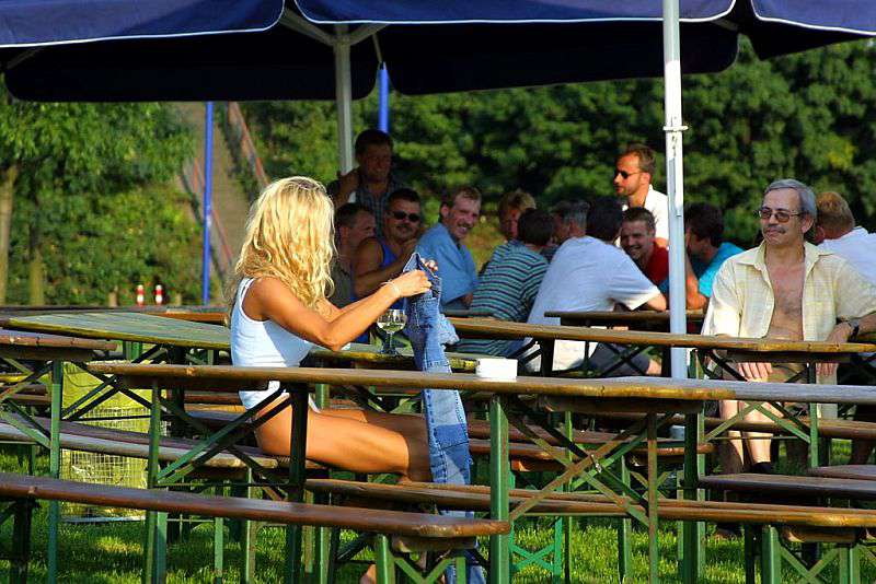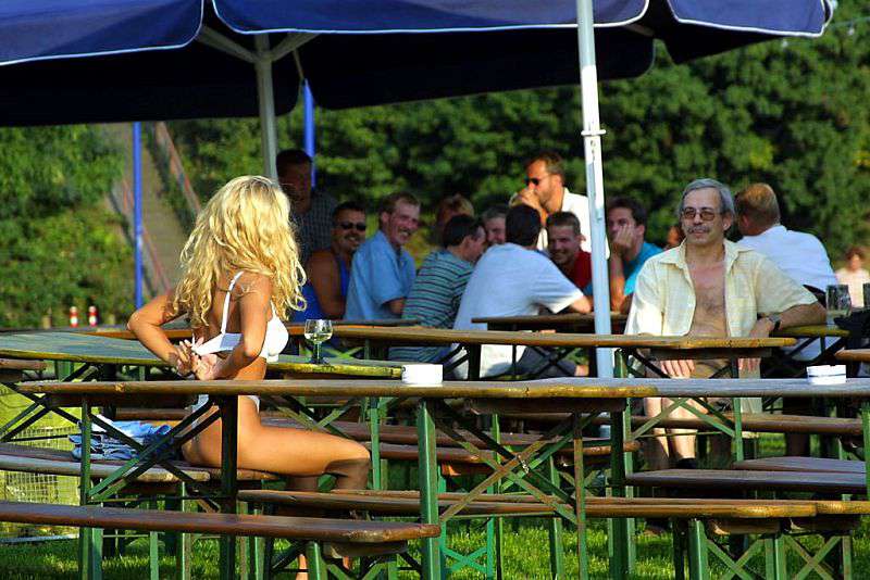 In a beer garden