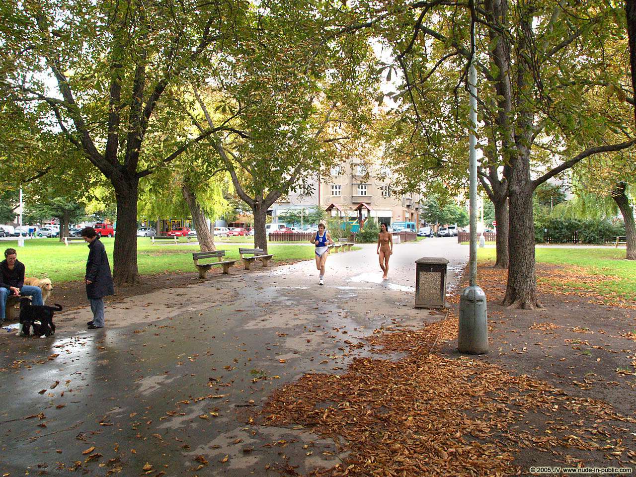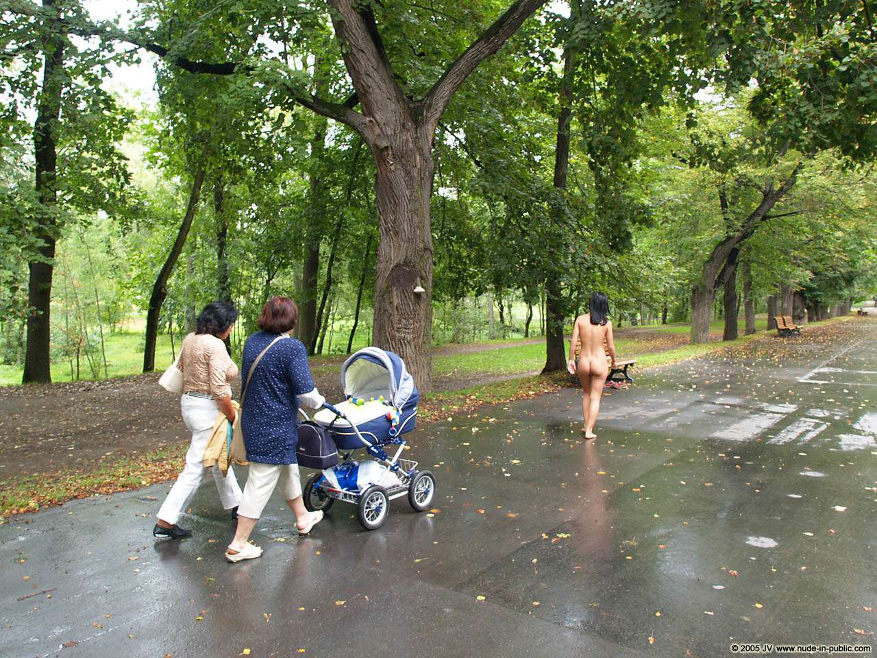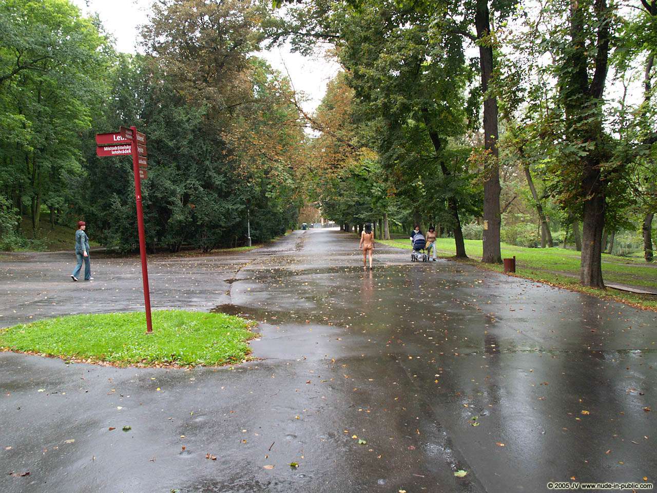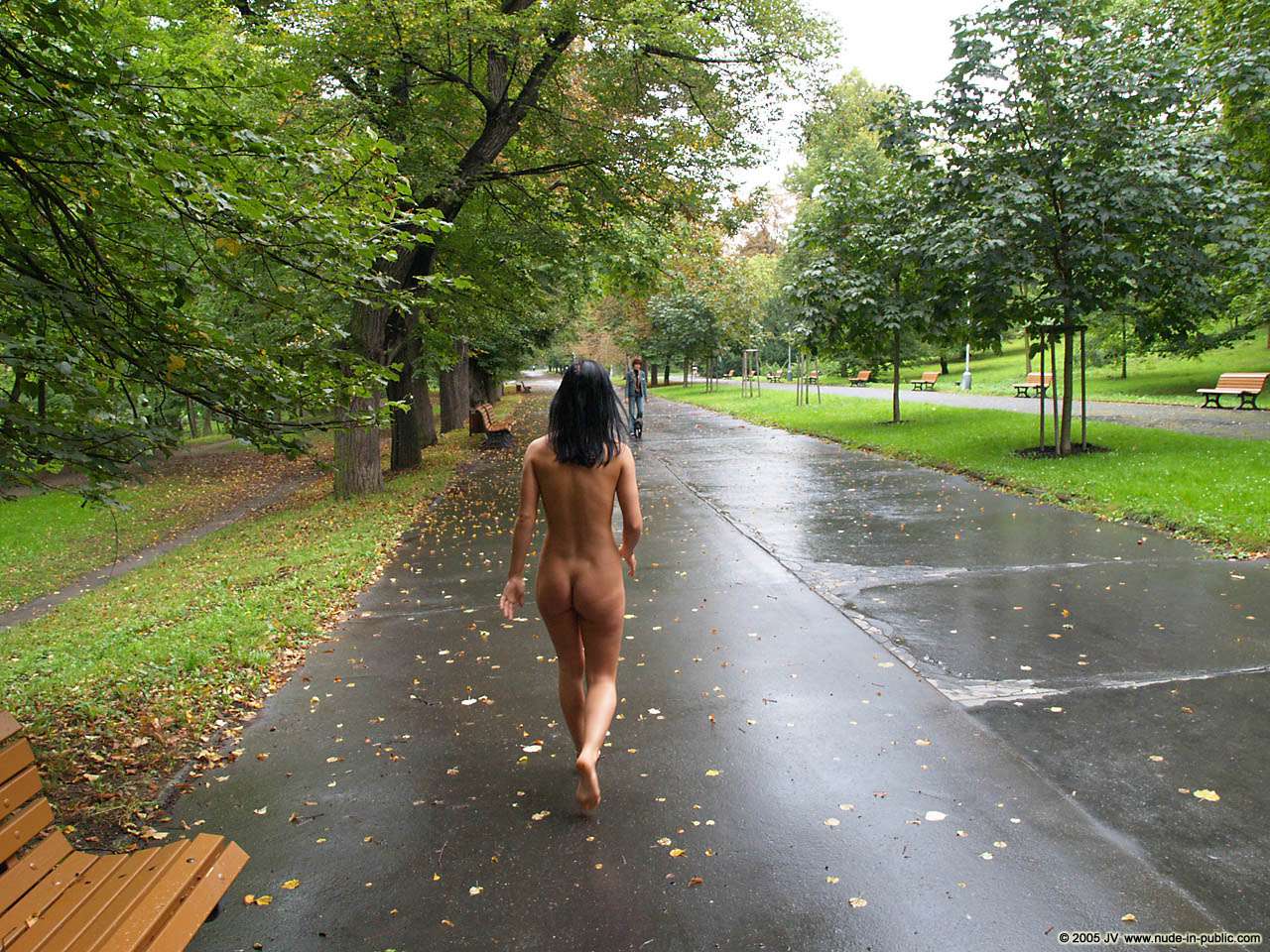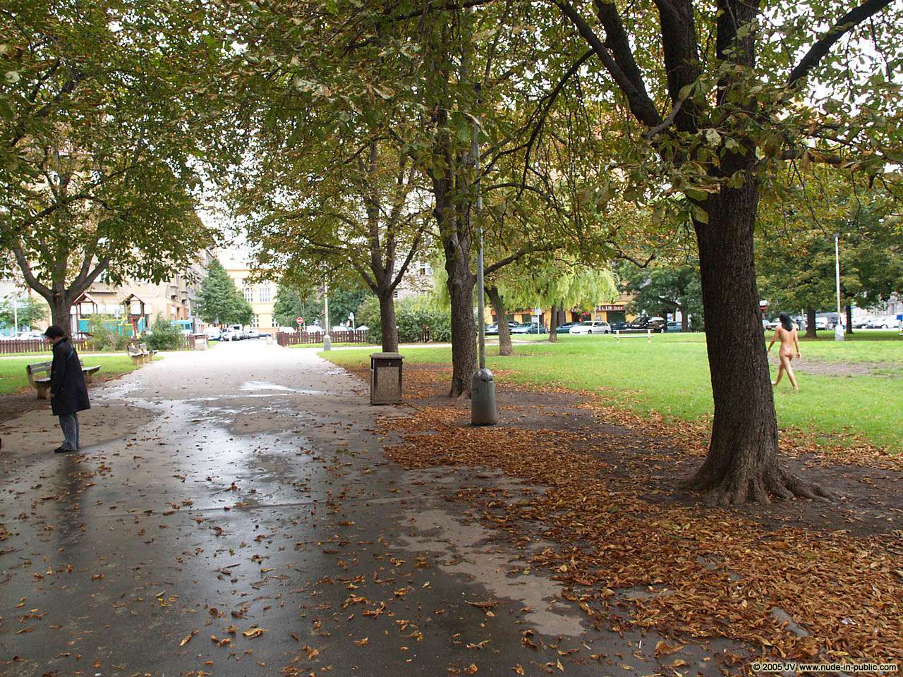 Through the park in the rain