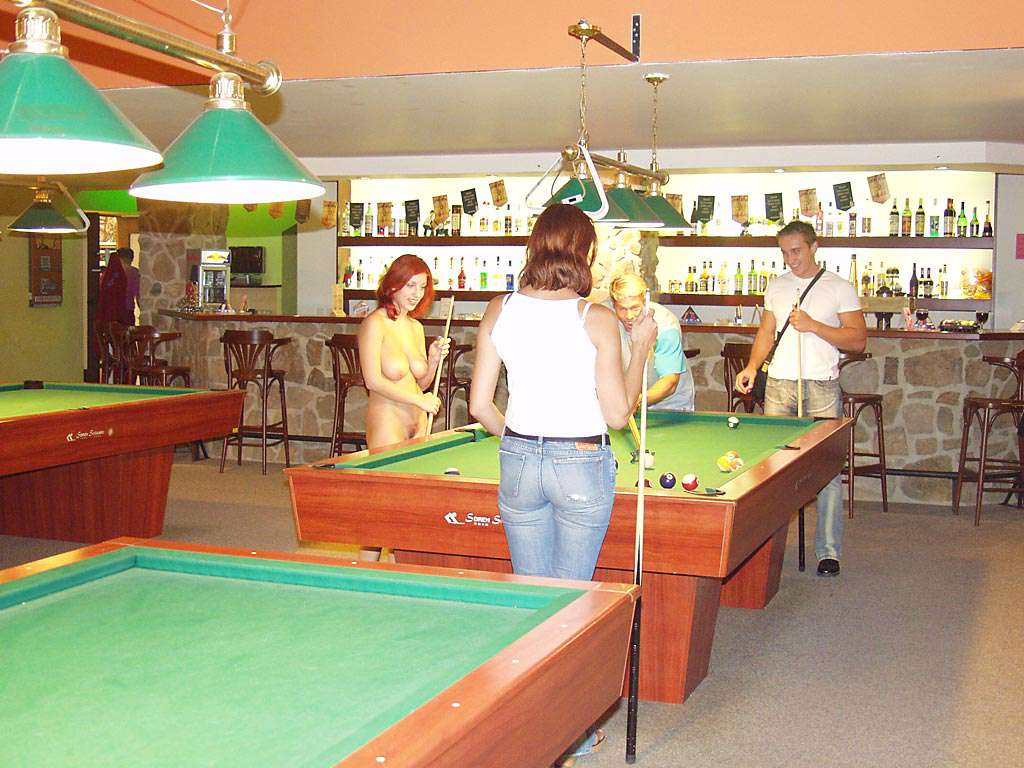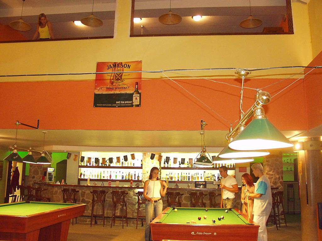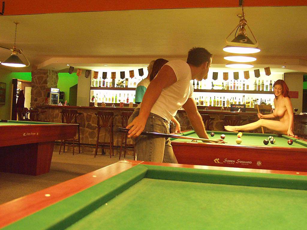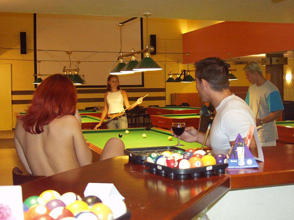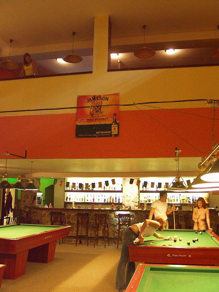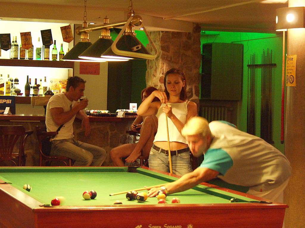 At a small billiard bar