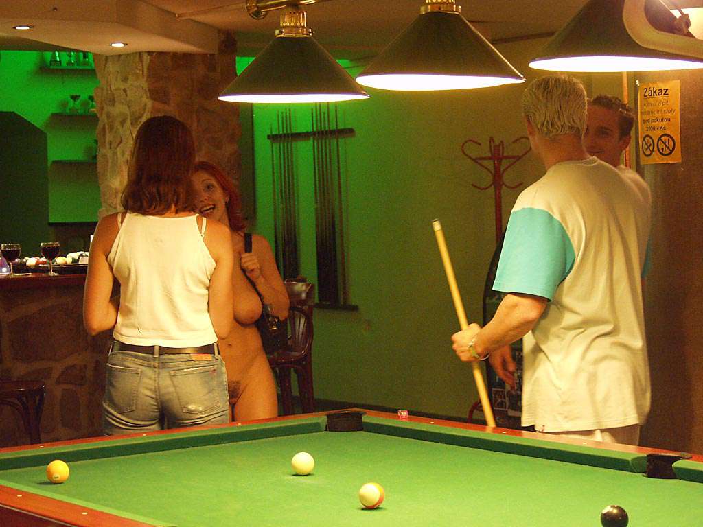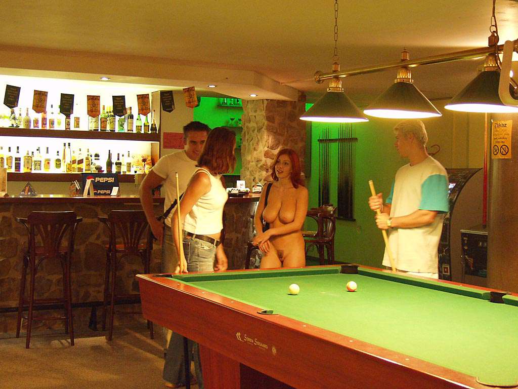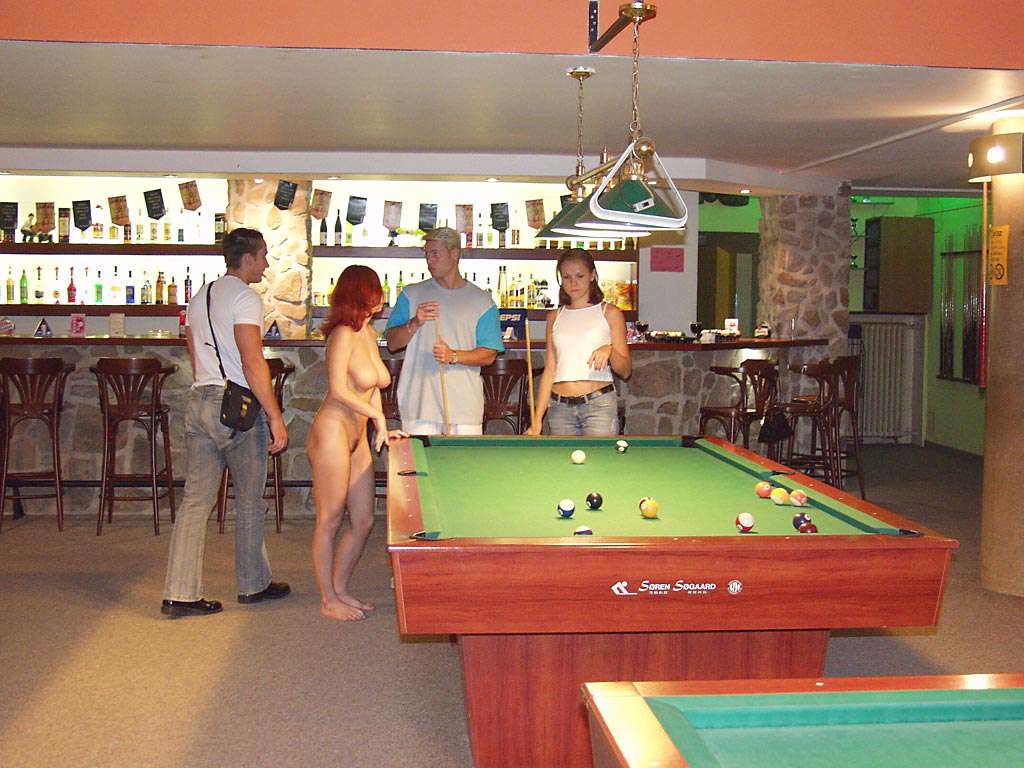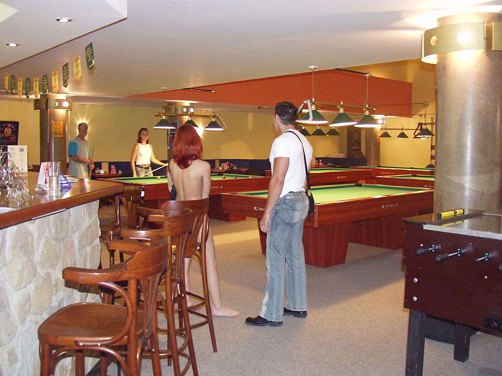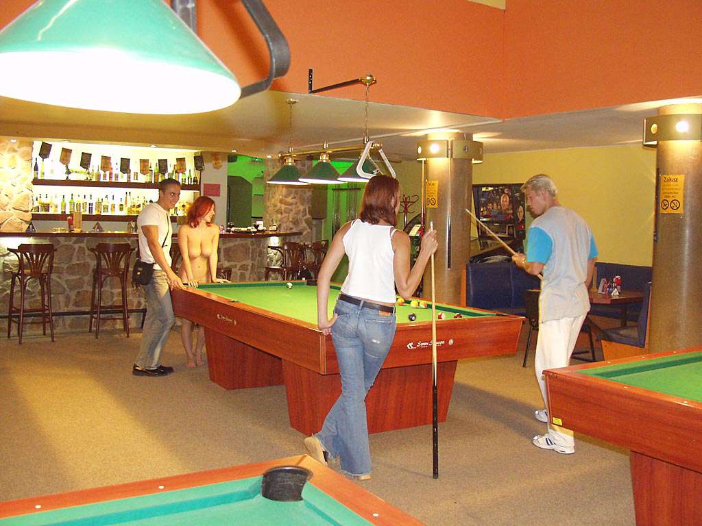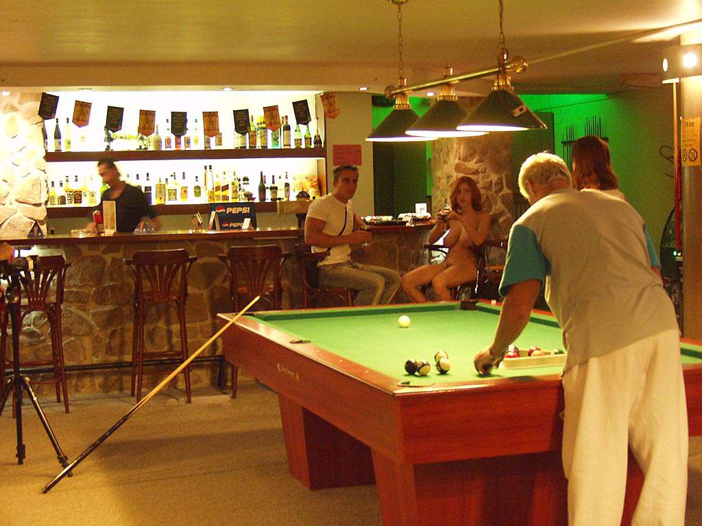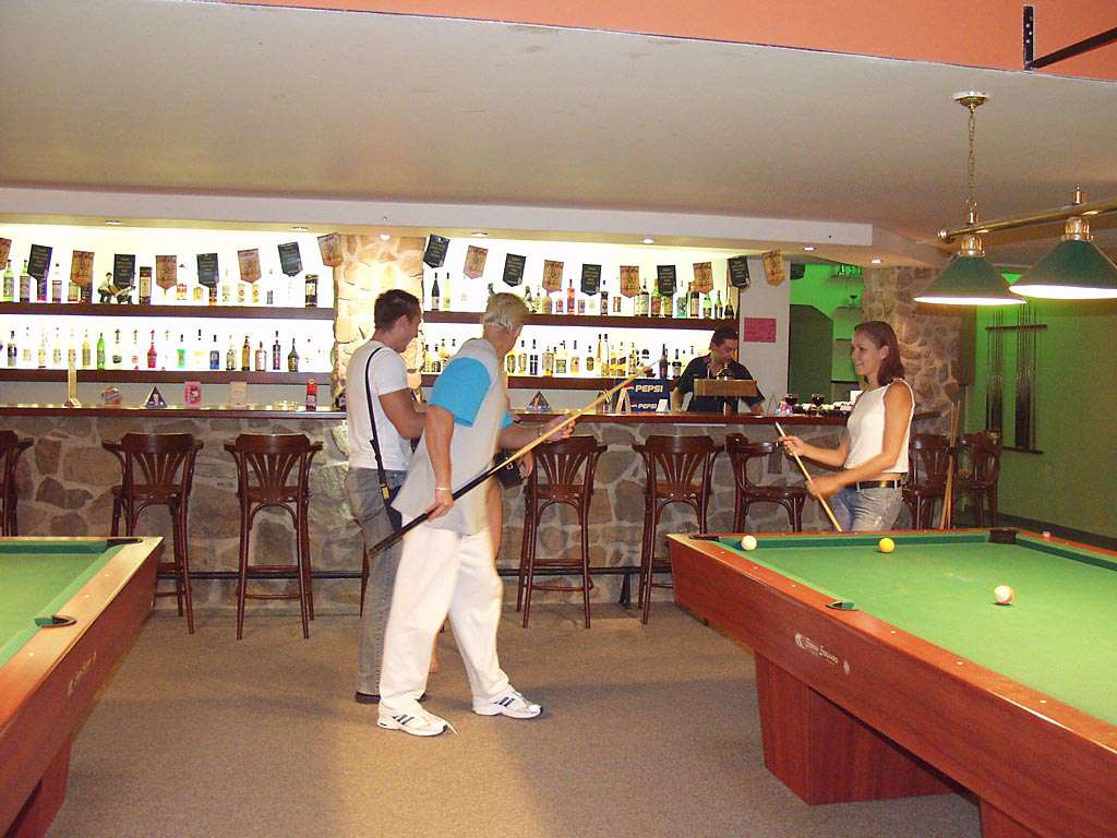 At a small billiard bar