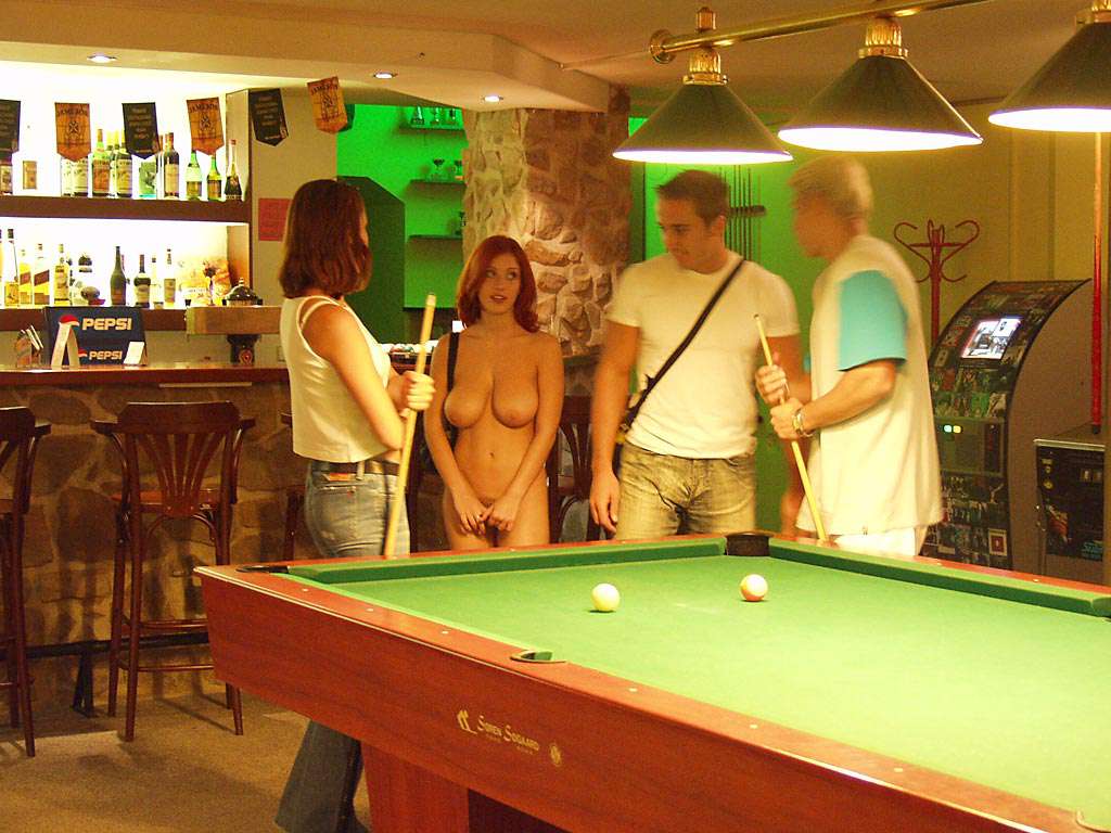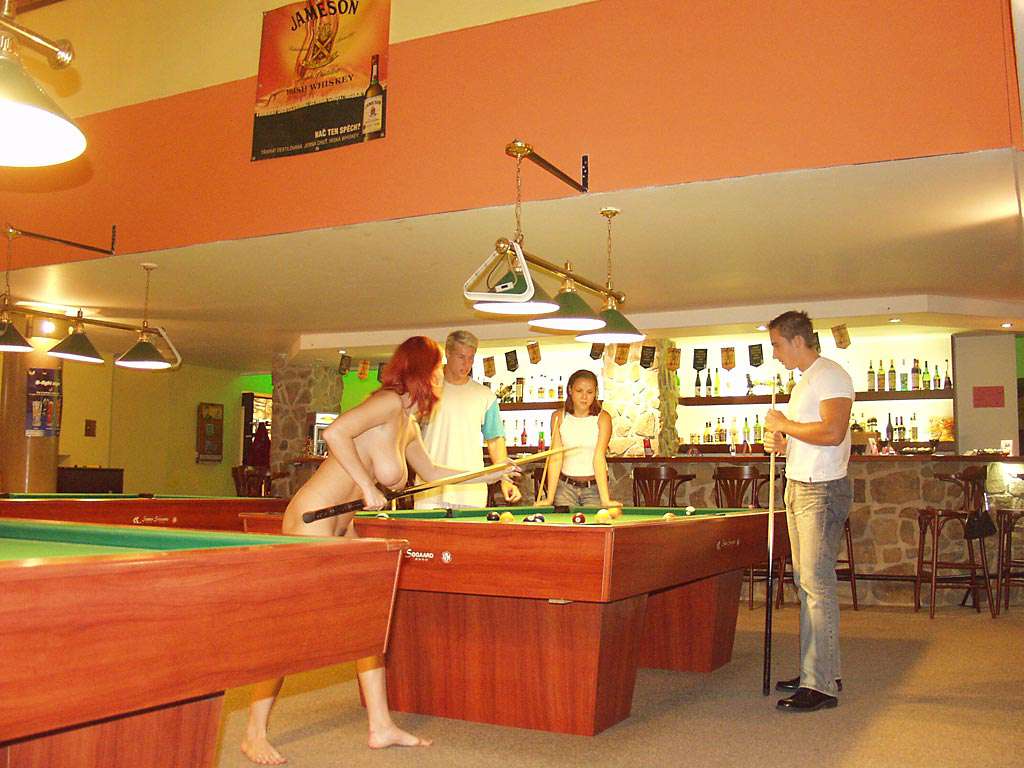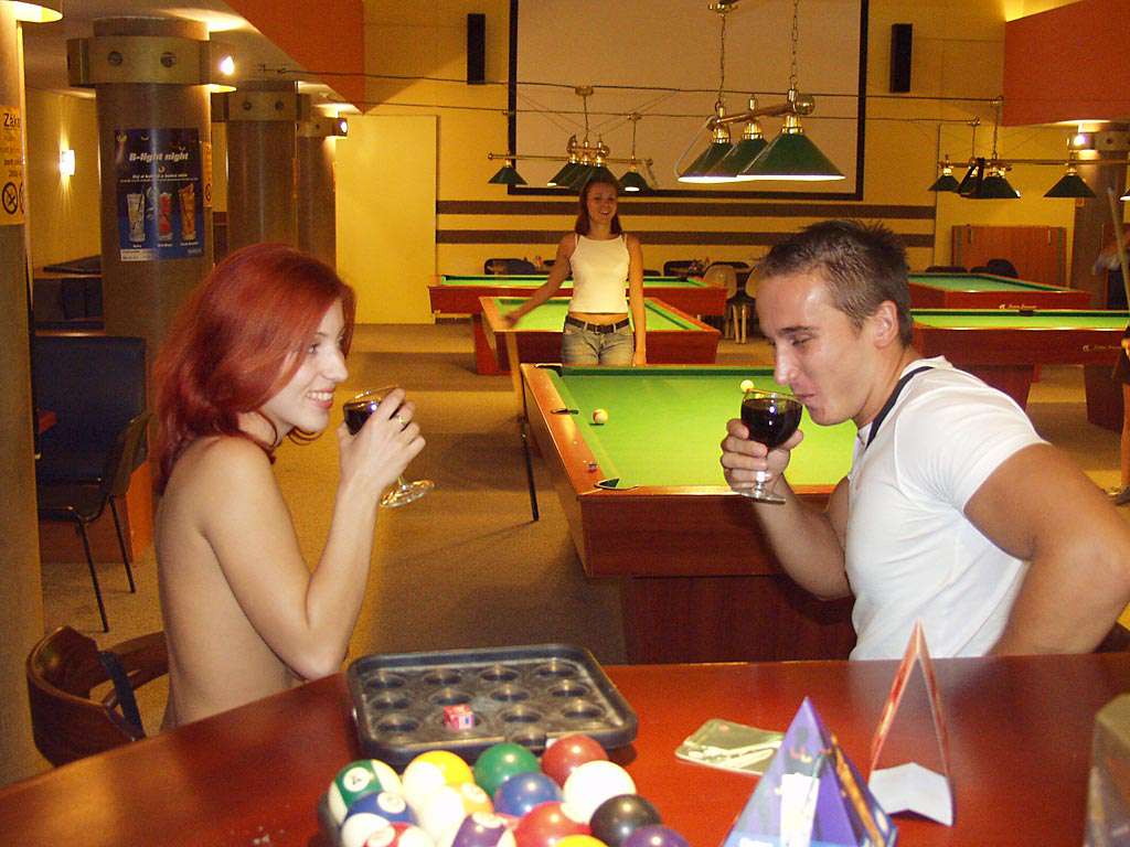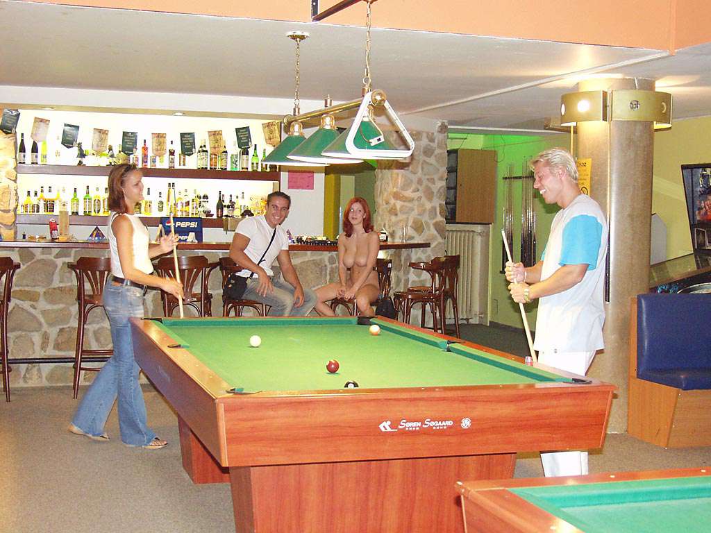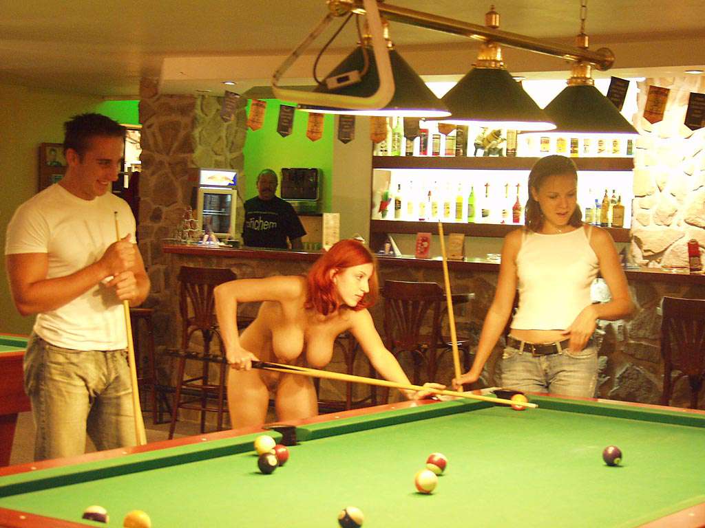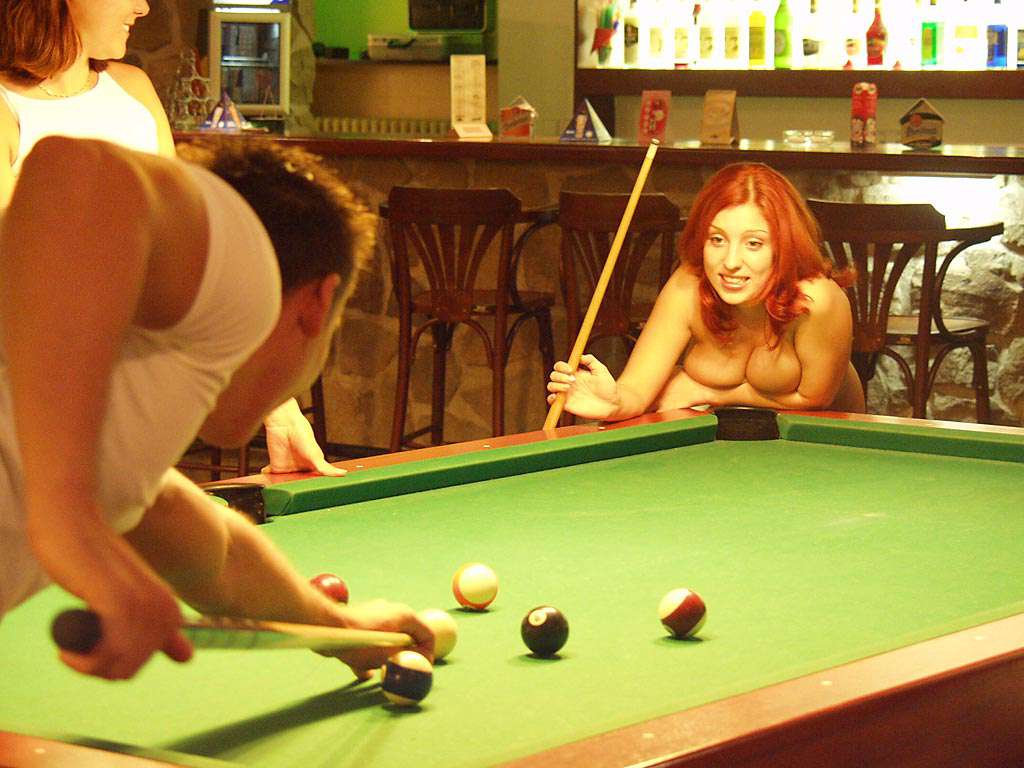 At a small billiard bar