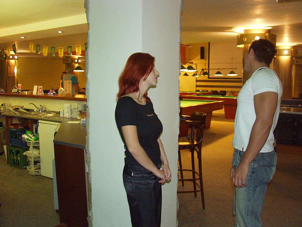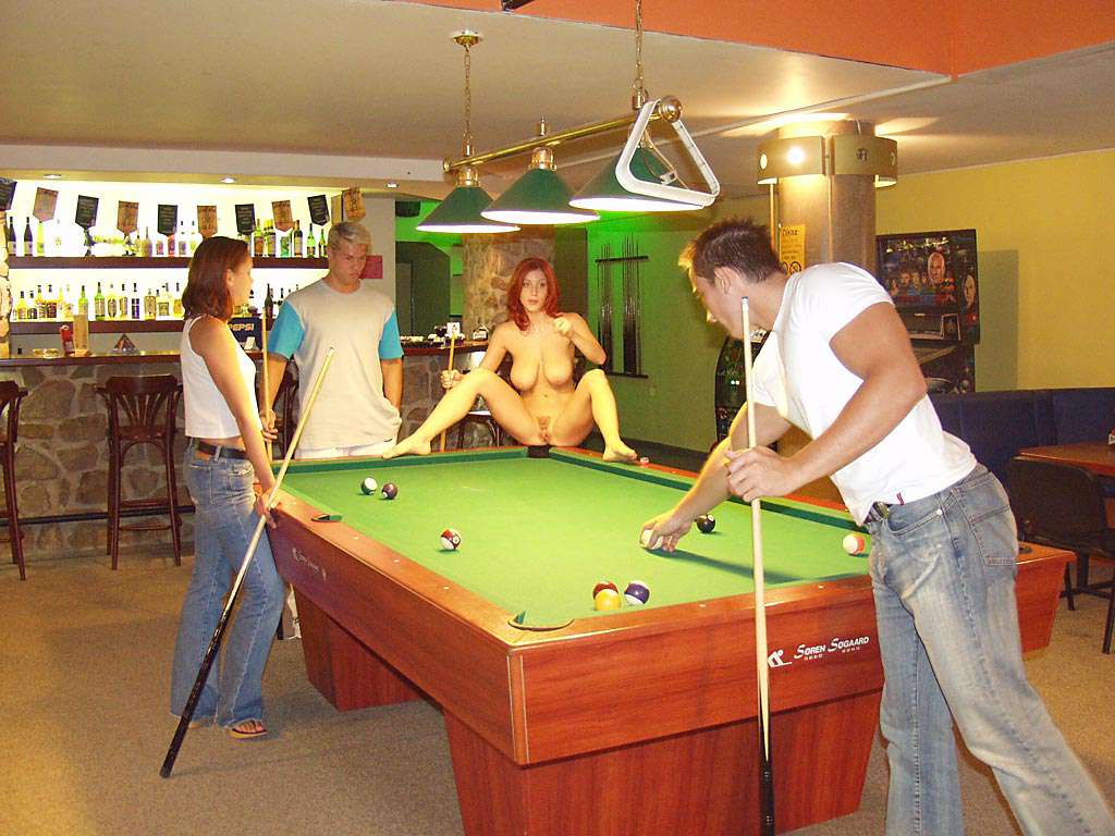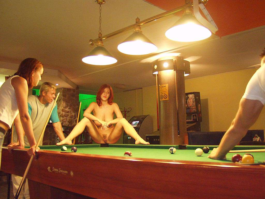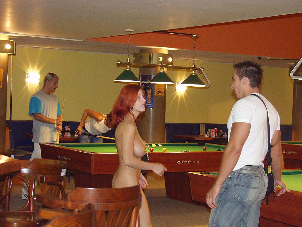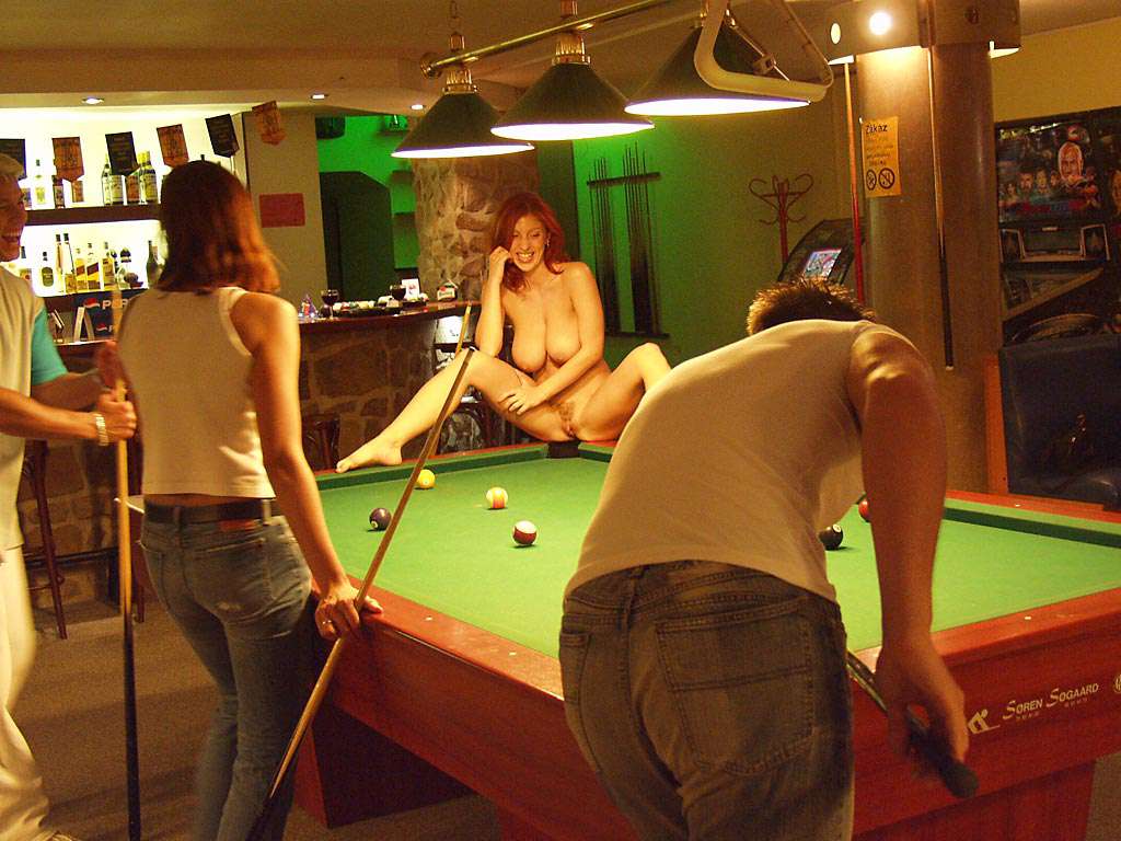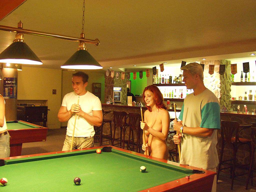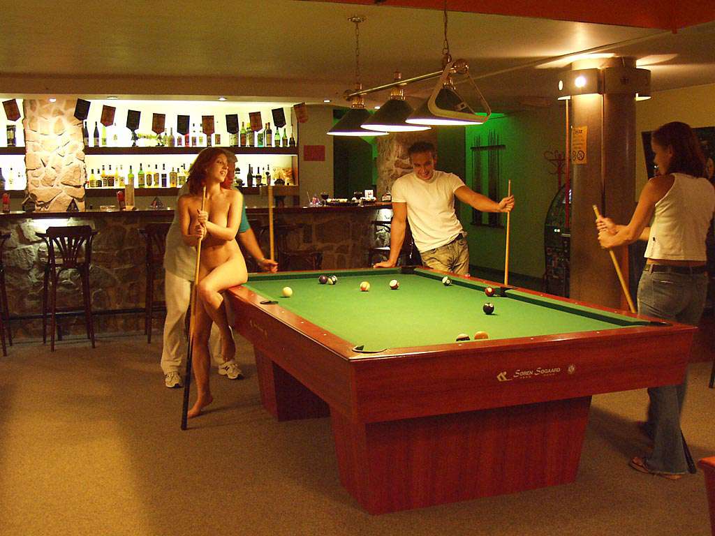 At a small billiard bar