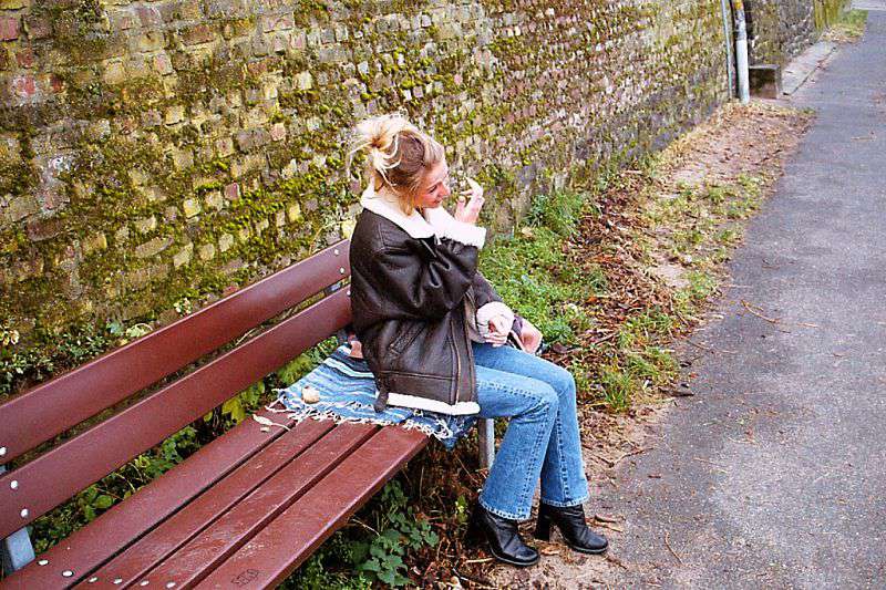 Tied on a park bench